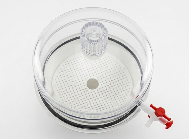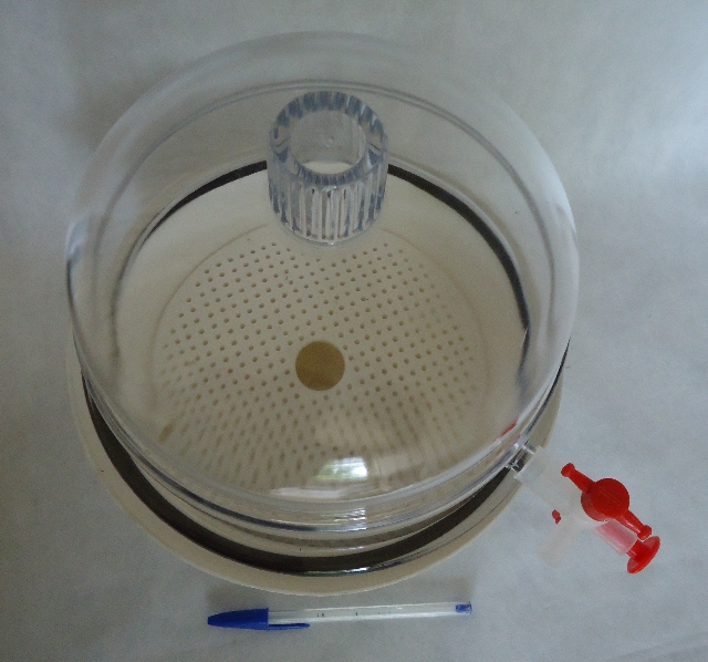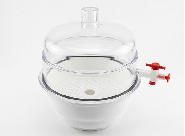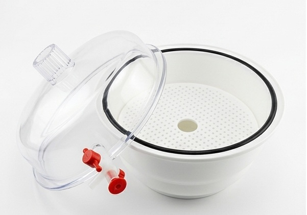 | Dessecador a vácuo, tampa em policarbonato e corpo em polipropileno.